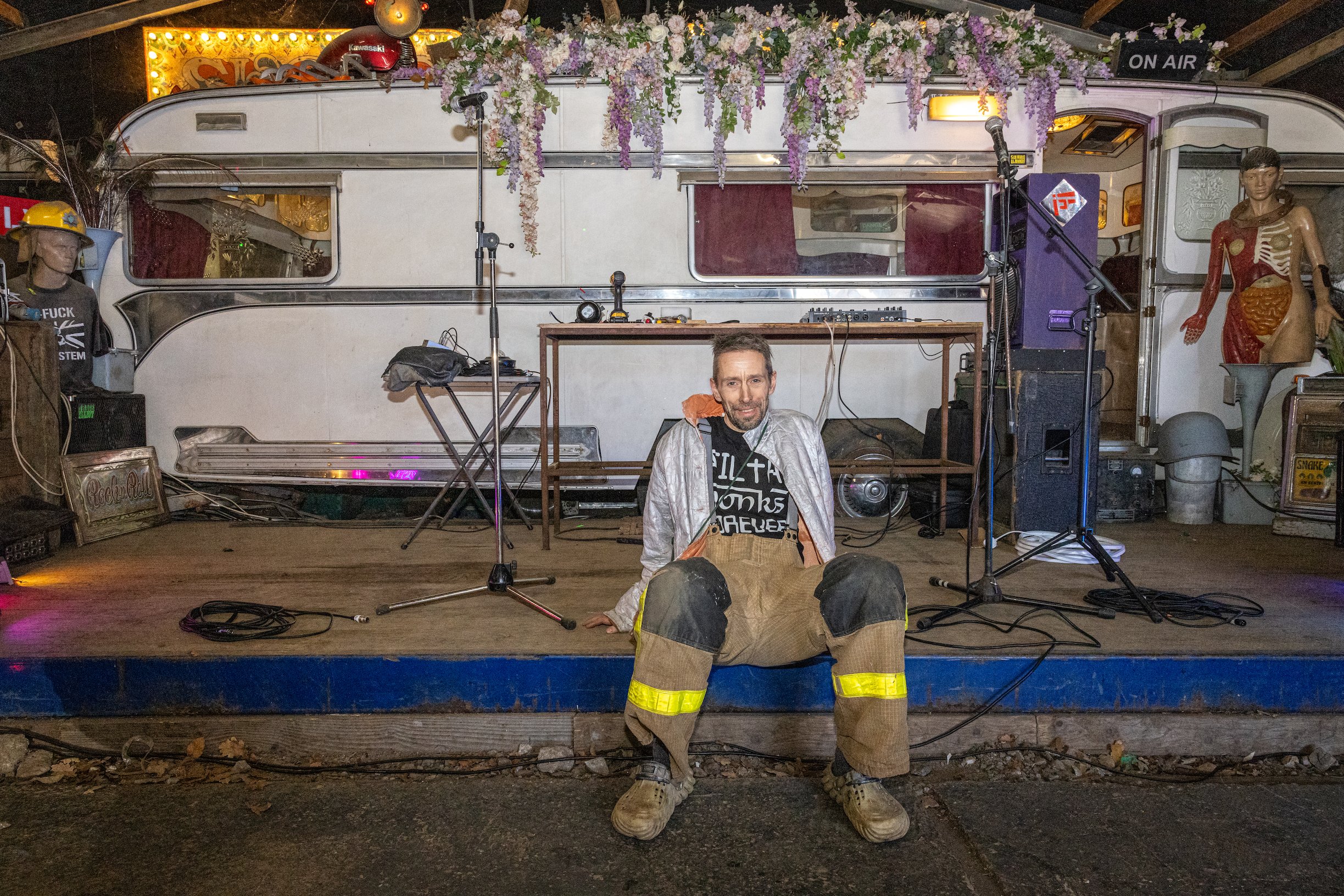 Mark, an art school drop out from Yeovil, formed the seminal anarcho Punk band The Mob. After years of living on the road, Mark landed in this disused Quarry and set up a breakers yard. If you lived in a van in the South West in the early naughties chances are you would have come across Mark and bought spare parts from him. The scrap business unfortunately failed and Mark was left bruised and bankrupt. Miraculously fate had other ideas as he managed to borrow the money to keep hold of the land. Out of the adversity, Rockaway Park was born.