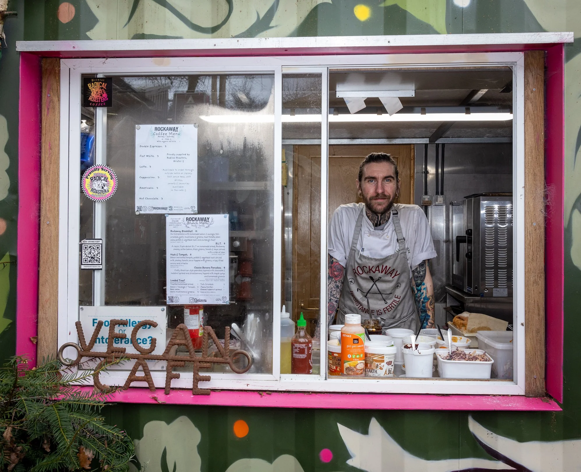 Harry joined the kitchen team in the summer of 2025 and has been a friend and supporter of Rockaway over the last few years through involvement in DIY punk collective Shitty Futures and their annual festival ‘Unrest’ which is held onsite.